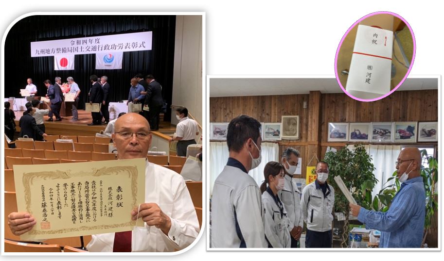 また、九州地方整備局からは7月にも 工事成績優秀企業の認定をうけており、