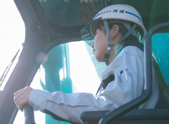 私の河建での仕事は、主に施工管理、測量、及び案件ごとの写真撮影・管理、書類作成等です。最初は先輩方に教えていただきながら、少しづつ業務を覚えていきました。この仕事のやりがいは、自分が携わった現場が完成して、検査を終えた時に達成感を感じられるところです。大変なこともありますが、現場によって施工方法や管理方法等が異なるため、今までの知識や経験を活かすことができたり、新たな知識を学べるので、自分自身のスキルアップにも繋がり、とても面白いと感じています。